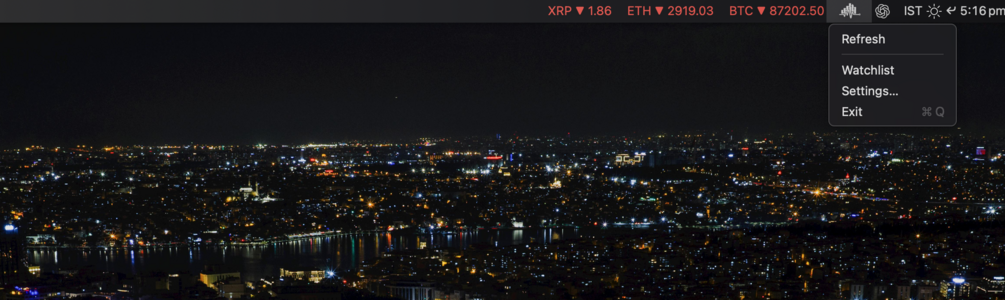 Track stocks, crypto, ETFs, FX, indices — live in your macOS menu bar. No charts. No clutter. Just signal.