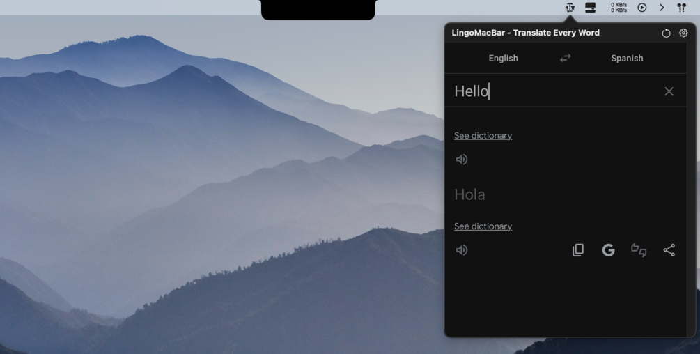 Say hello to LingoMacBar – the smartest, cleanest, and lightest translation app made just for your Mac menu bar as the ultimate menu bar translator.